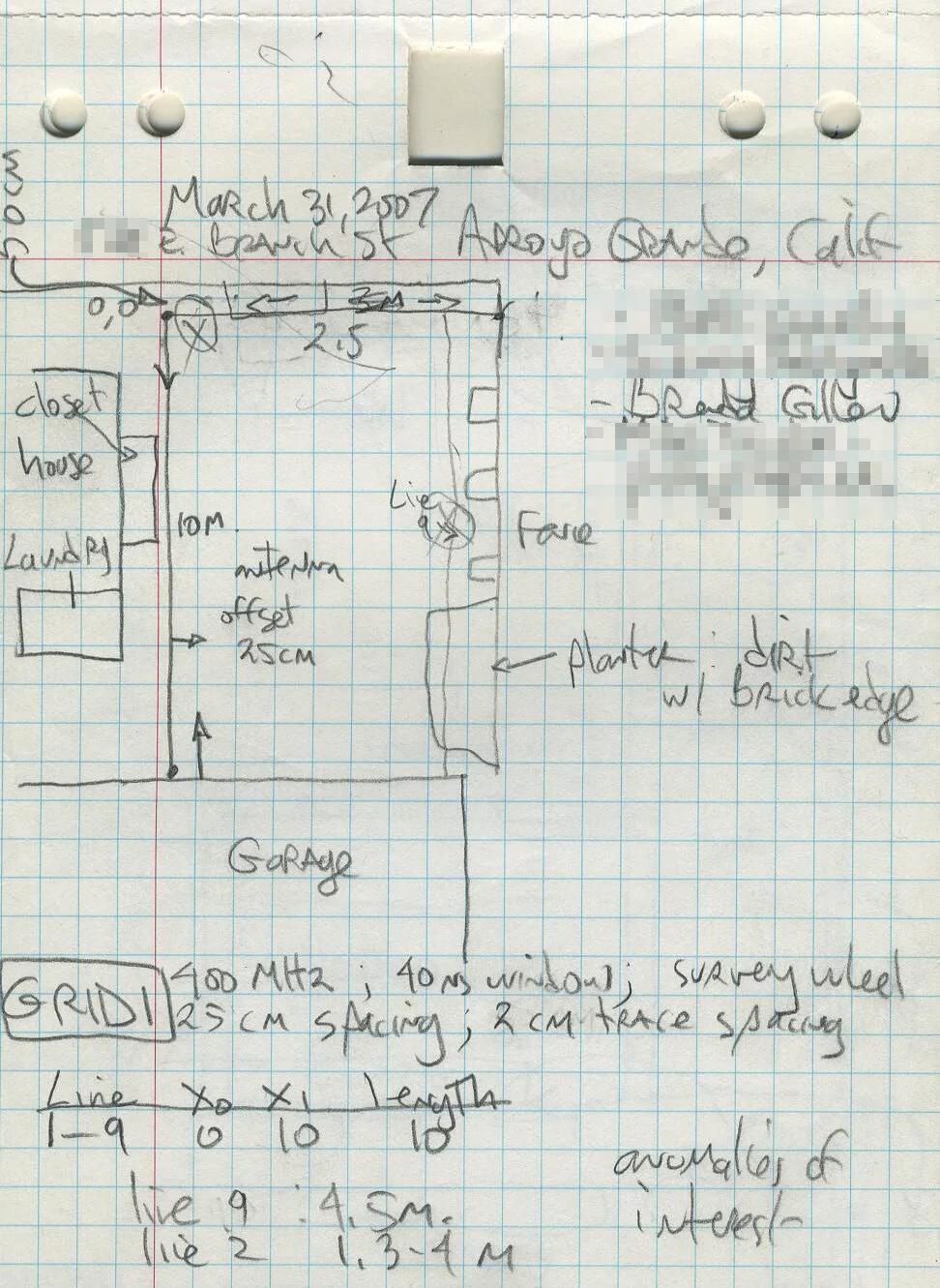 Professor Lawrence Conyers’ notes from the March 31, 2007 search of Susan Flores’ backyard